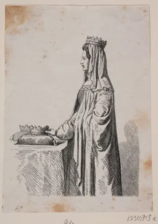 Radering af Dronning Margretes monument i Roskilde Domkirke. Udført af kunstner Jacob Kornerup (1825–1913) i 1851.