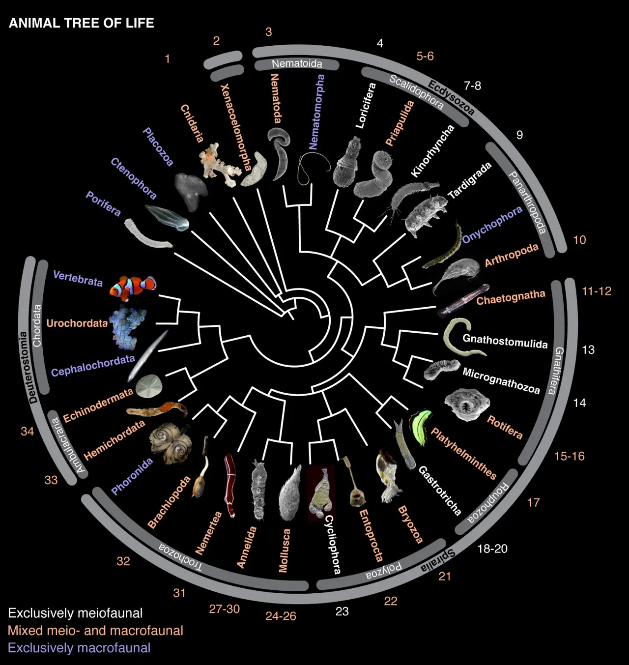 99 procent af al forskning på området er i dag koncentreret om kun to dyrerækker, nemlig leddyrene (for eksempel insekter, hvor især bananfluer benyttes) og så de såkaldte chordater, der blandt andre inkluderer hvirveldyr som os mennesker. Mens der er kortlagt fulde genomer af for eksempel abe- og fårearter og andre større dyr, findes der ikke fulde genomer for de 10 mikroskopiske dyrerækker.