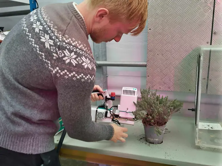 Til dette anvendes et bærbart specialapparat, der kan måle de plantefysiologiske processer som fotosyntese og respiration. Apparatet er blevet anskaffet på baggrund af en bevilling fra Carlsbergfondet.
