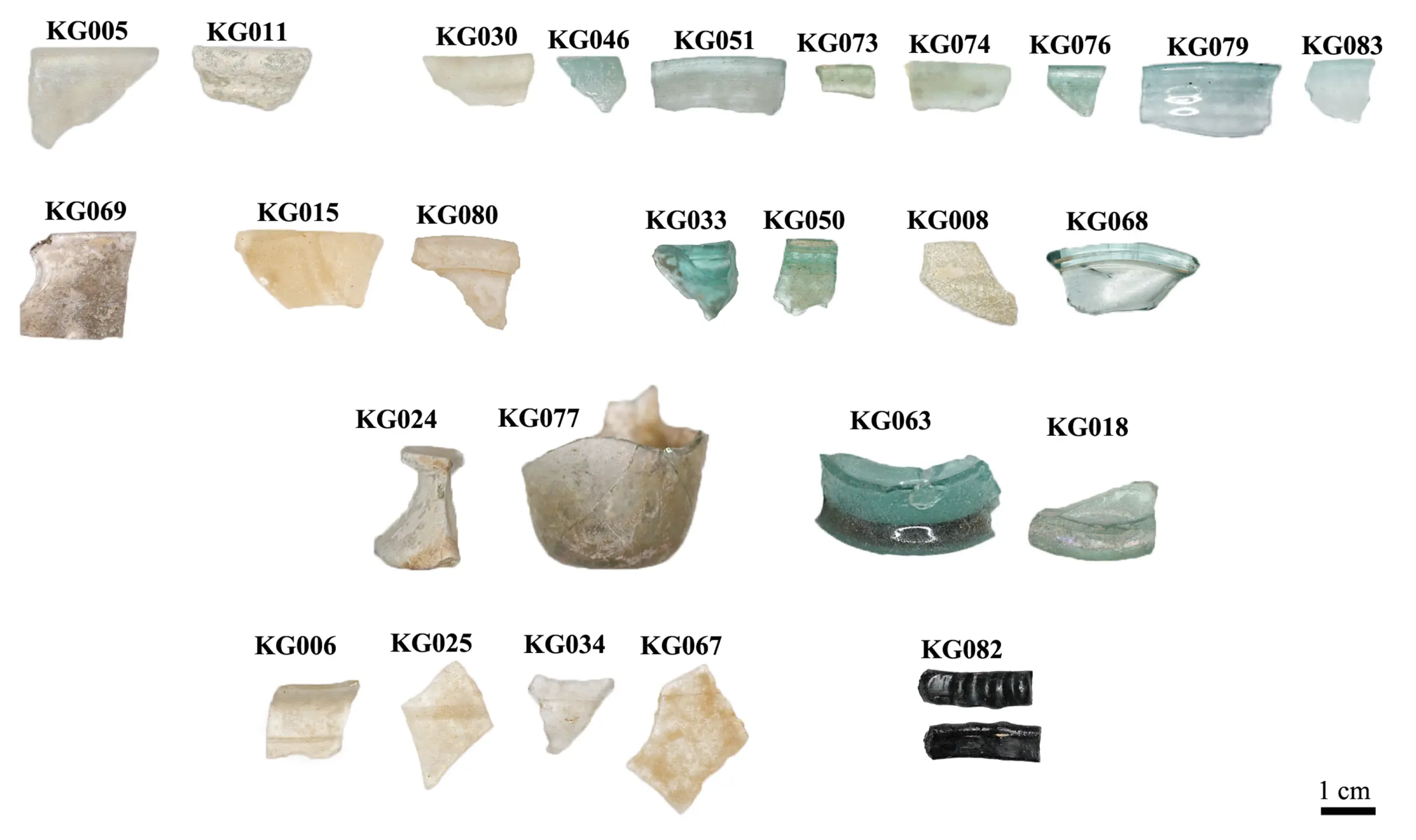 På blot to ugers feltarbejde nåede arkæologerne at gennemgå et areal på 20.000 m² og registrere mere end 26.000 fund. Blandt dem var 84 glasfragmenter, som repræsenterer i alt 80 genstande, såsom kar, vinduesglas og et enkelt armbånd. Alle fragmenter – på nær ét stykke fra moderne tid - blev analyseret med LA-ICP-MS for at bestemme deres kemiske signatur.